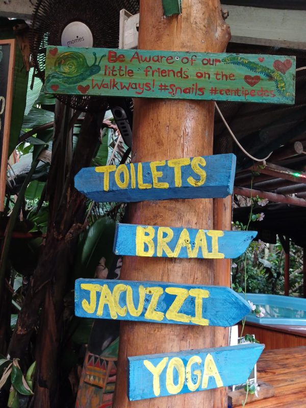 With Umzumbe Beach (a proud Blue Flag beach) just a stone’s throw away, we decided to take a walk. It’s a stunning stretch of sand, perfect for long romantic strolls… except we got caught in the rain. Not just a drizzle — full-blown monsoon vibes. Soaked but laughing, we headed back to Mantis and Moon, the rain adding to the jungle magic.