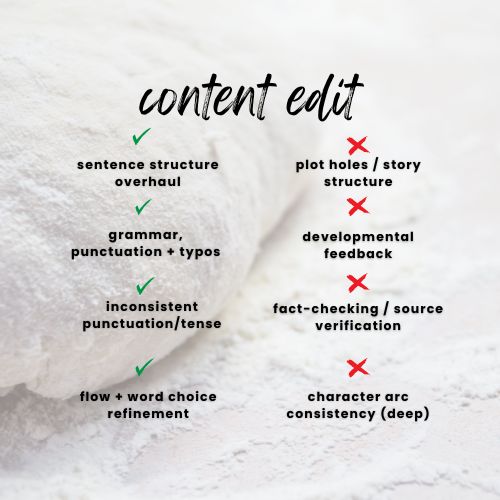 - Developmental or Structural Edits: We do not analyze plot holes, character arcs, or overall manuscript flow.
